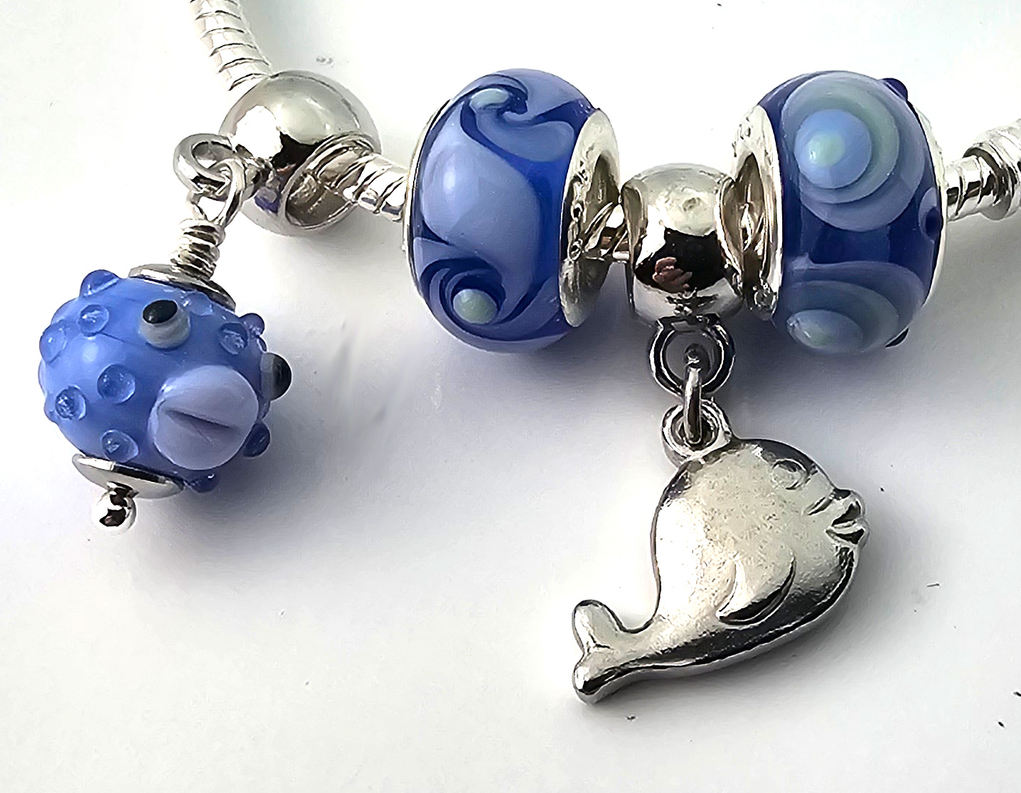 Alle Glasperlen werden am Zweigas-Brenner aus Morettiglas (Muranoglas) handgefertigt. Die Perlen werden im digital gesteuerten Ofen spannungsfrei getempert. Für lange Lebensdauer robuste Qualität. Jedes Teil ist ein Unikat.