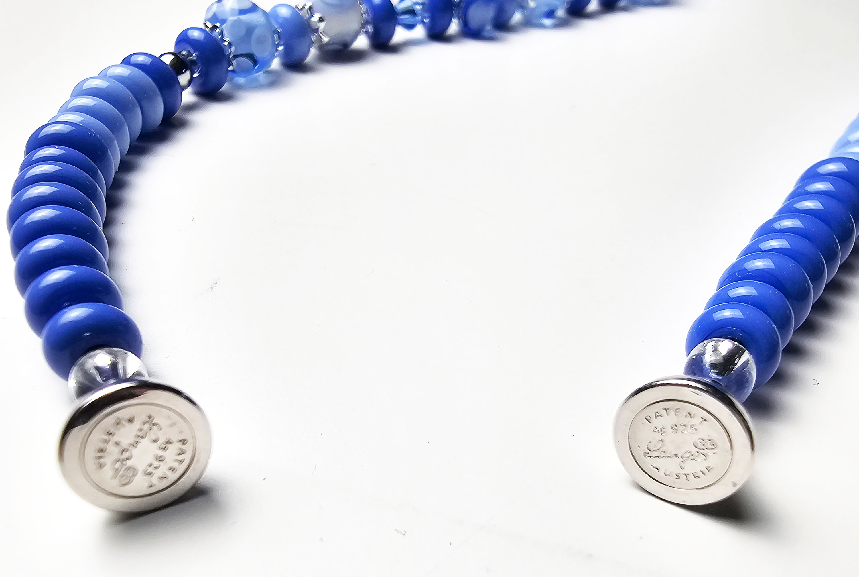 Besondere Aufmerksamkeit verdient der patentierte Magnetverschluss von der Fa. Langer. Die Langer-Magnetschließe, hier mit rhodiniertem Sterlingsilber, unterscheidet sich von anderen Magnetschließen wesentlich. Bei Langer-Magnetschließen mit Qualitätssiegel an der Innenseite sind die Magneten vollkommen mit Edelmetall verschlossen und daduch nicht sichtbar. Also kein offener, verklebter oder laserpunktierter Magnet. In diesen Verschluss kann keine Flüssigkeit oder Schweiß etc. endringen. Made in Austria. Fa. Langer besitzt über 15 Jahre Produktionserfahrung sowie die dazugehörenden Patente.