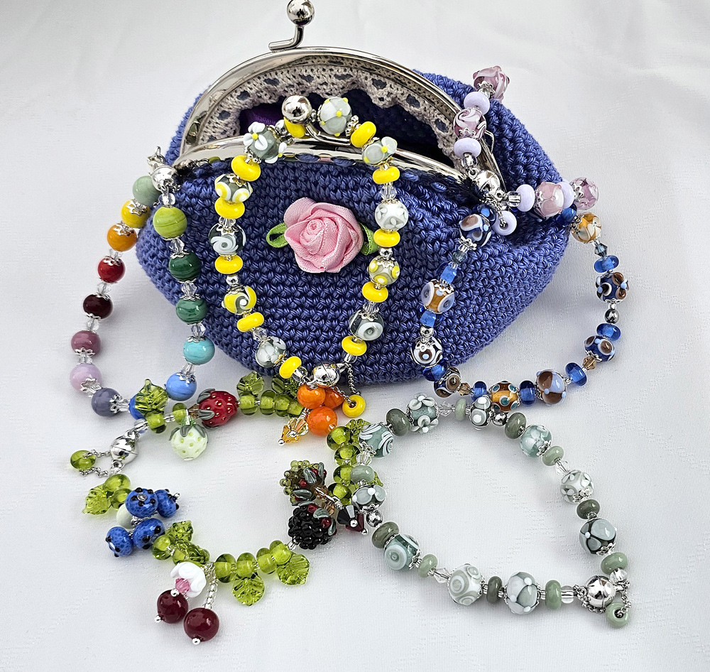 Armband mit Früchten. 21 cm. Traumhaftes Armband in einer wahren Farbexplosion. Die natürlich wirkenden Glasfrüchte sind an offener Flamme in meiner Werkstatt in aufwändiger Handarbeit modelliert. Alle meine Perlen haben eine eigene Note, einen unverwechselbaren Stil und werden von mir mit hochwertigsten Materialien verarbeitet. Besondere Aufmerksamkeit verdient der patentierte Magnetverschluss von der Fa. Langer. Die Langer-Magnetschließe unterscheidet sich von anderen Magnetschließen wesentlich. Bei Langer-Magnetschließen mit Qualitätssiegel an der Innenseite sind die Magneten vollkommen mit Edelmetall verschlossen und daduch nicht sichtbar. Also kein offener, verklebter oder laserpunktierter Magnet. In diesen Verschluss kann keine Flüssigkeit oder Schweiß etc. endringen. Made in Austria. Fa. Langer besitzt über 20 Jahre Produktionserfahrung sowie die dazugehörenden Patente. Die Perlen sind für eine lange Lebensdauer durch einen programmierten Abkühlprozess in meinem Spezial-Perlenofen spannungsfrei getempert. Aufgefädelt auf 49adrigen Edelstahldraht mit HiFlex-Ummantelung aus Nylon (Juweliersdraht) für garantiert hohe Lebensdauer und einen guten Schutz gegen Abrieb. Sicherungskettchen 925er Sterlingsilber, rhodiniert gegen Anlaufen. Hinweis: Vor dem Tragen von Schmuck mit Magnetverschluss sollten Personen mit elektronischem Implantat ihren Arzt konsultieren. Damit Ihr Armband schön leger fällt, kann die Armbandlänge angepasst werden. Dazu benötigen wir die Angabe des kleinsten Umfangs vom Handgelenk. Diese Angabe können Sie vor dem letzten Schritt im Bestellvorgang im Feld "Kommentar" eingeben.
