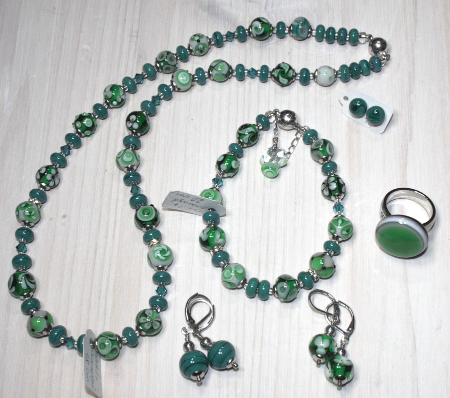 Hinweis zu den Bildern: Die Abbildung mit der farblich abgestimmten Kollektion soll Anregung zur Kombination bzw. Ergänzung des oben genannten Schmuckstückes sein.