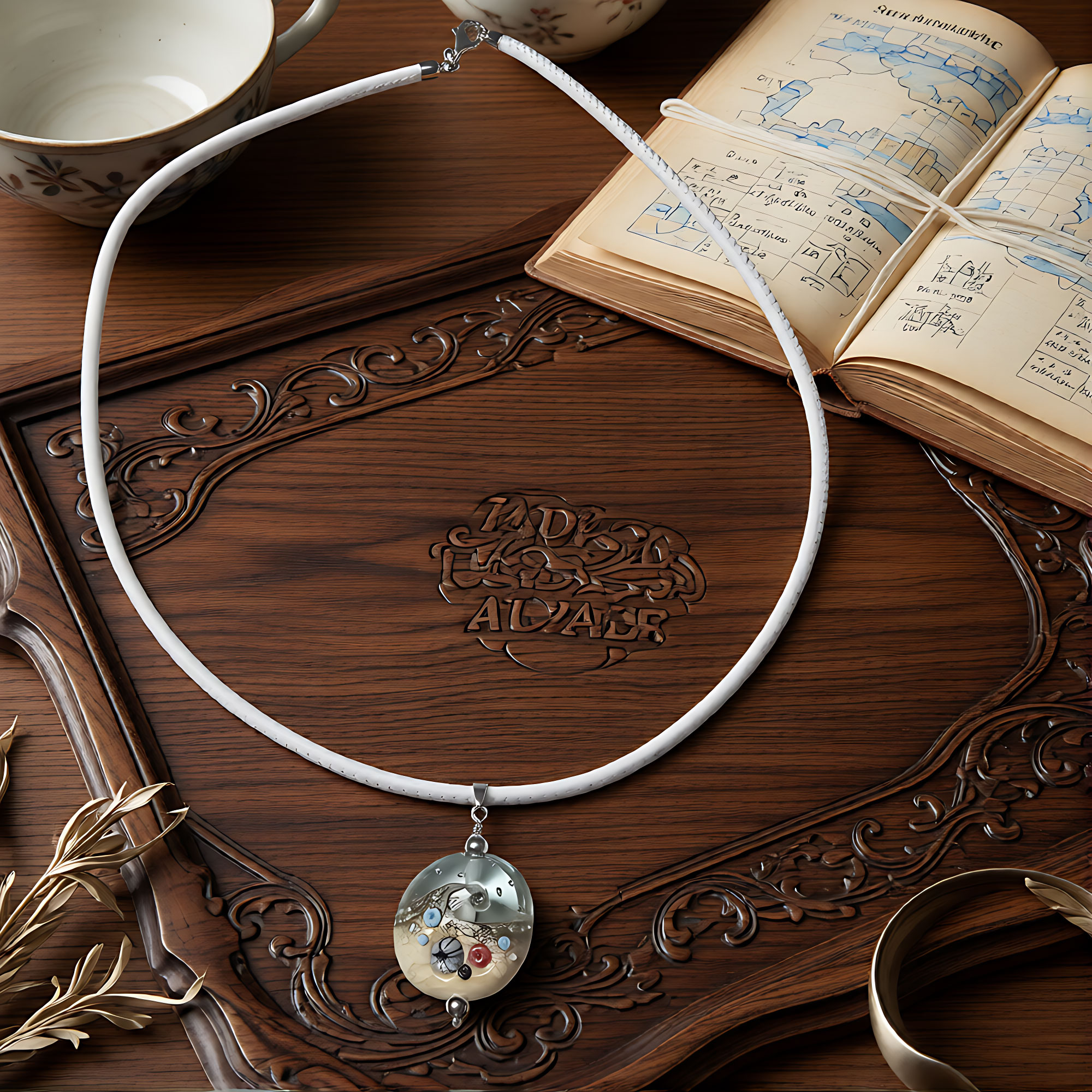 Nappalederband,50 cm, rund gesäumt, 3 mm Bandstärke, weiß und Karabinerverschluss aus Edelstahl mit Anhänger Strandperle.