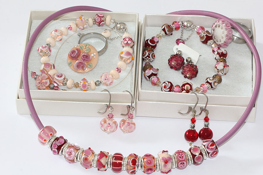Hinweis zu den Bildern: Die Abbildung mit der farblich abgestimmten Kollektion soll Anregung zur Kombination bzw. Ergänzung des oben genannten Schmuckstückes sein.
