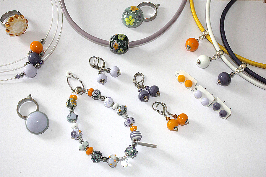 Hinweis zu den Bildern: Die Abbildung mit der farblich abgestimmten Kollektion soll Anregung zur Kombination bzw. Ergänzung des oben genannten Schmuckstückes sein.