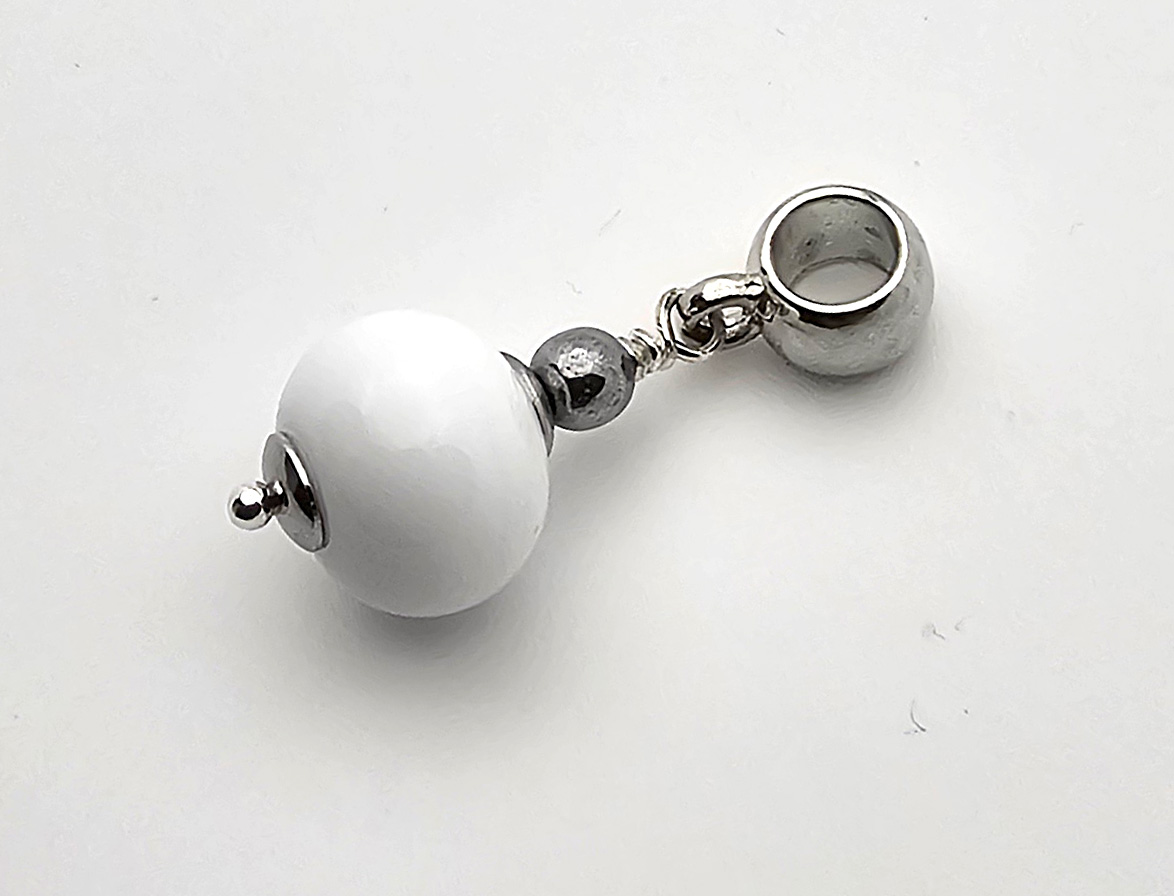 Kleiner Anhänger aus Muranoglas, weiß, mit 13-mm-Perle.Gesamtlänge ist 33 mm.