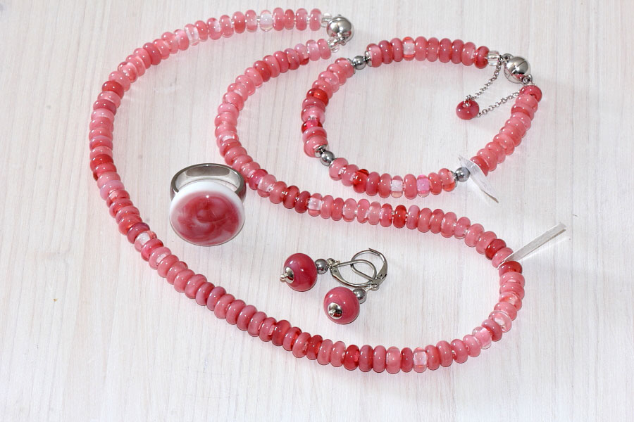Kette Mystic Pink ca.50cm. Handgewickelte Perlen aus Muranoglas im Verlauf in Pinktönen. Dieses Design wirkt in seiner schlichten Eleganz fast magisch auf den Betrachter und unterstreicht den Stil seiner Trägerin. Die Kette ist sehr flexibel und schmiegt sich angenehm an.