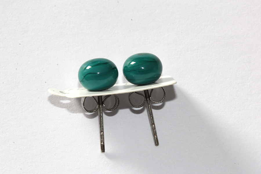 Ohrstecker, malachitgrün (petrol), mit handgewickelter Perle, Durchmesser ca. 7 mm, aus Muranoglas.