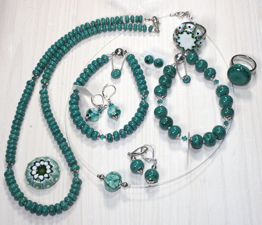 Hinweis zu den Bildern: Die Abbildung mit der farblich abgestimmten Kollektion soll Anregung zur Kombination bzw. Ergänzung des oben genannten Schmuckstückes sein.