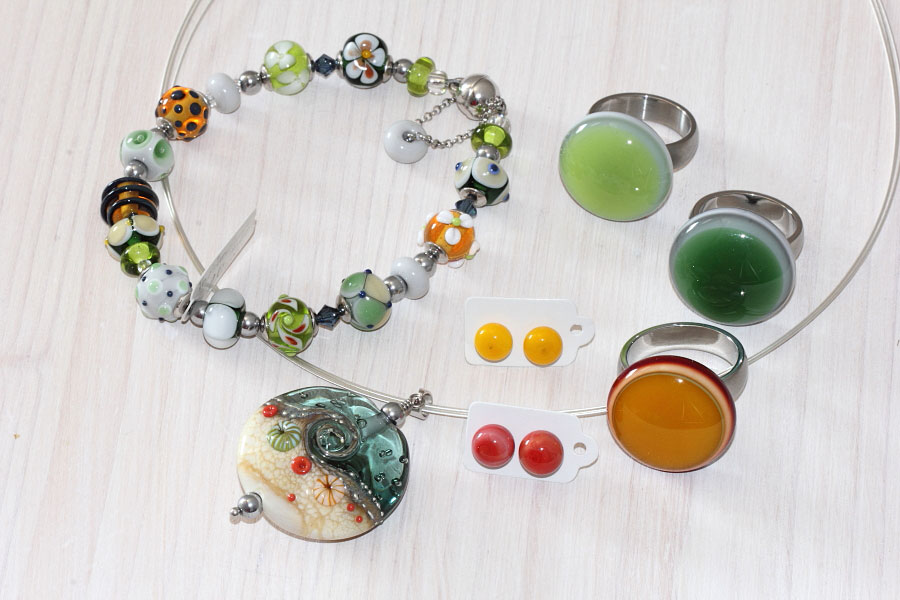 Das Farbglas wurde ohne Trennmittel direkt auf den Edelstahl geschmolzen und ist auf diese Weise unlösbar mit dem Stift verbunden. Nichts ist geklebt. Die Perlen sind im programmierten Spezialofen spannungsfrei getempert.