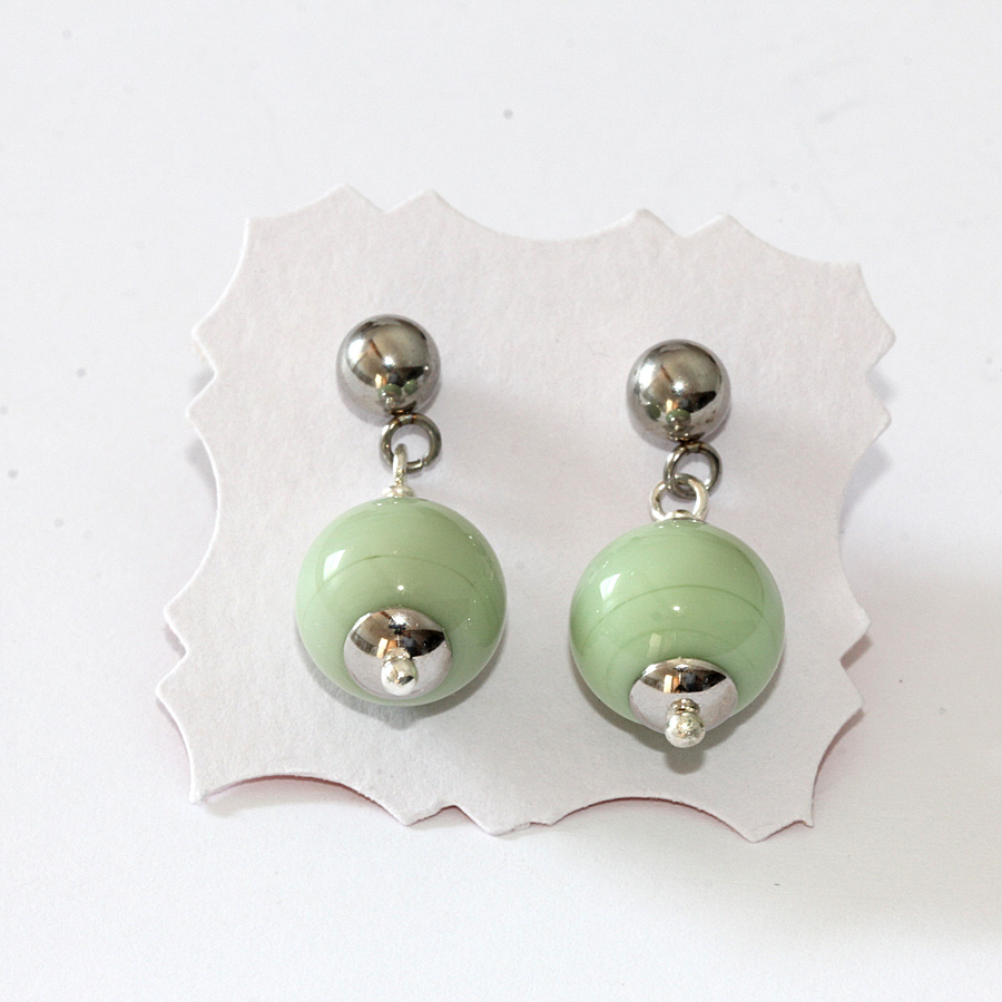 Ohrstecker aus Chirurgenstahl mit hängender Perle, Durchmesser ca. 12 mm, aus Muranoglas in mintgrün.