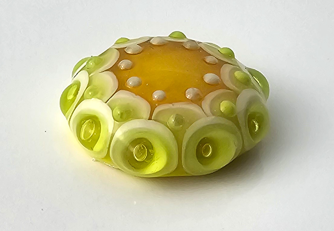 Alle Glasperlen werden am Zweigas-Brenner aus Morettiglas (Muranoglas). Die Perlen werden im digital gesteuerten Ofen spannungsfrei getempert. Sie sind somit robust wie die Murmeln aus Kindertagen. Jedes Teil ist ein Unikat.