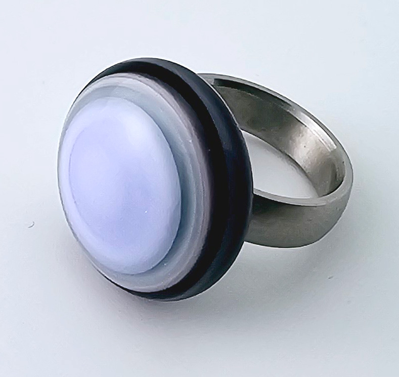 Wechselring-Top (Ringaufsatz) aus Muranoglas. Akzentfarbe Lavendel. Durchmesser 20 mm, 8 mm hoch.