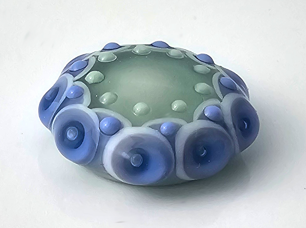 Alle Glasperlen werden am Zweigas-Brenner aus Morettiglas (Muranoglas). Die Perlen werden im digital gesteuerten Ofen spannungsfrei getempert. Sie sind somit robust wie die Murmeln aus Kindertagen. Jedes Teil ist ein Unikat.