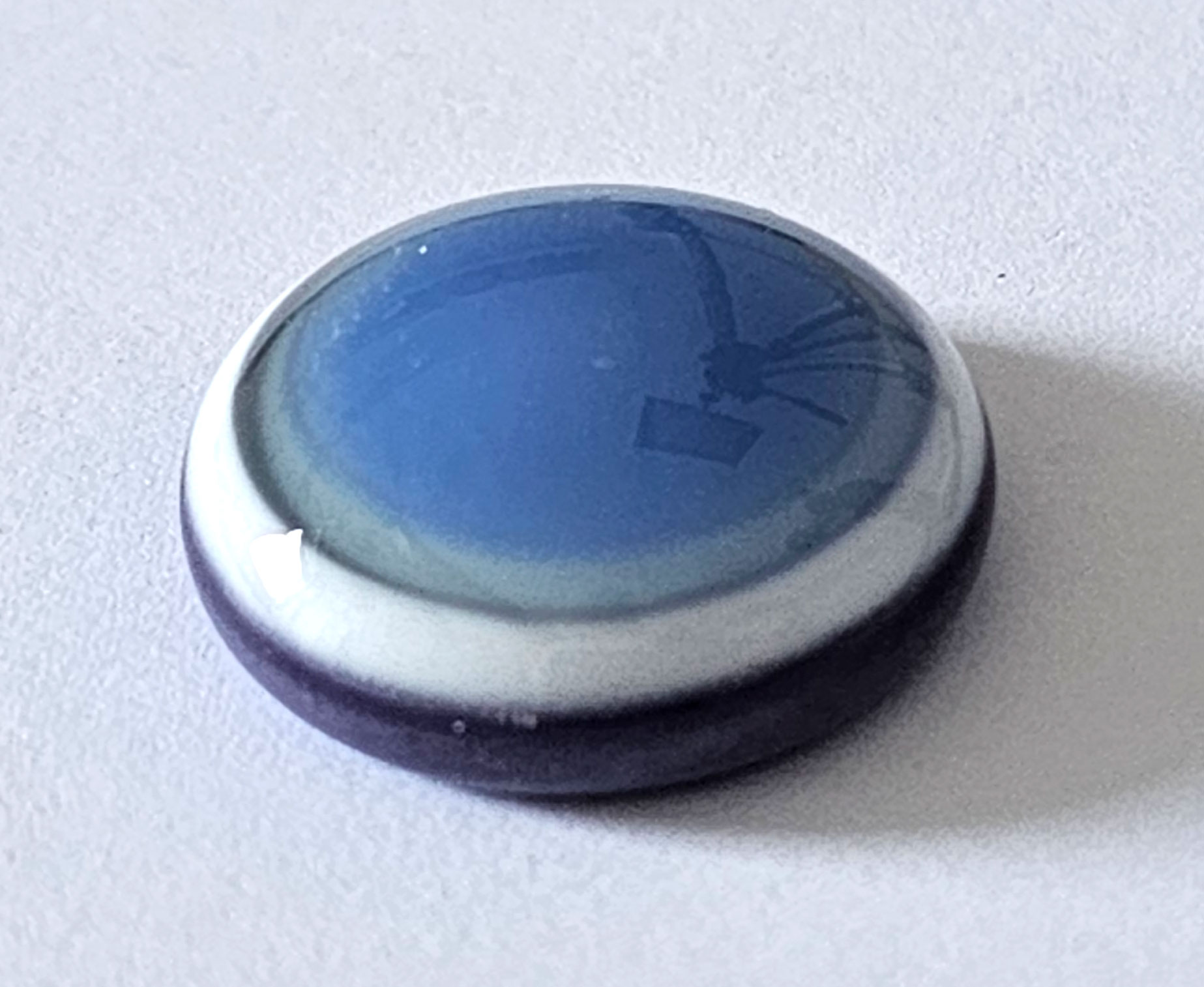 Ring-Top in einem Tanzanitblau-Farbton mit weiß-grauem Rand.