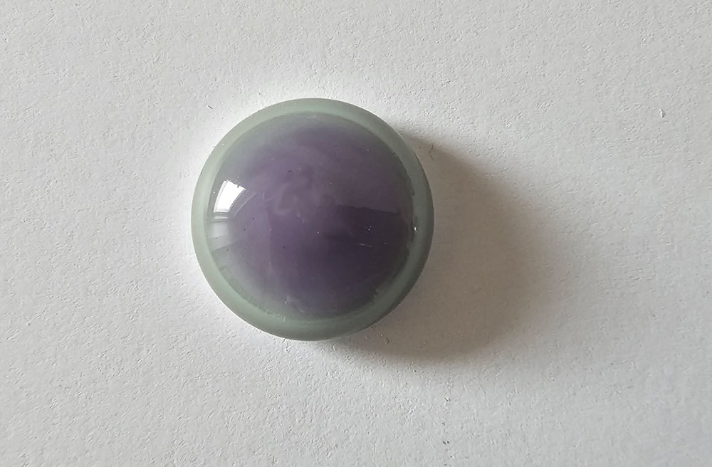 Wechselring-Top (Ringaufsatz) aus Muranoglas. Akzentfarbe Flieder. Durchmesser 17 mm, 8 mm hoch. Das Glas wurde direkt auf eine spezielle Edelstahl-Mutter gewickelt. Glas und Mutter sind untrennbar miteinander verbunden. Das Top wird einfach auf den Gewindezapfen des Grundringes (auch hier im Shop erhältlich) aufgeschraubt.