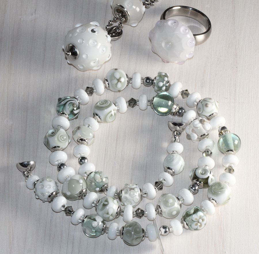Hinweis zu den Bildern: Die Abbildung mit der farblich abgestimmten Kollektion soll Anregung zur Kombination bzw. Ergänzung des oben genannten Schmuckstückes sein.
